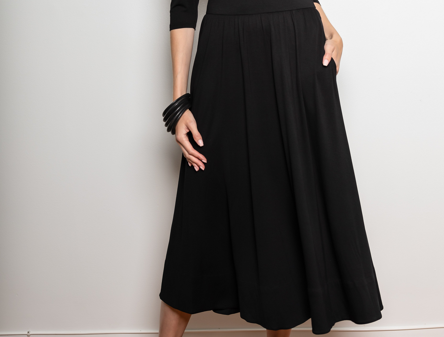 A modern tribute to ballet elegance, this skirt features cascading knife pleats that sway with effortless grace. A smooth inner lining and silky-soft touch offer comfort, while the discreet back zip replaces elastic for a clean, tailored silhouette. Style it with tucked-in blouses, cropped knits, or fitted bodysuits to showcase its sculptural volume-structured yet fluid.