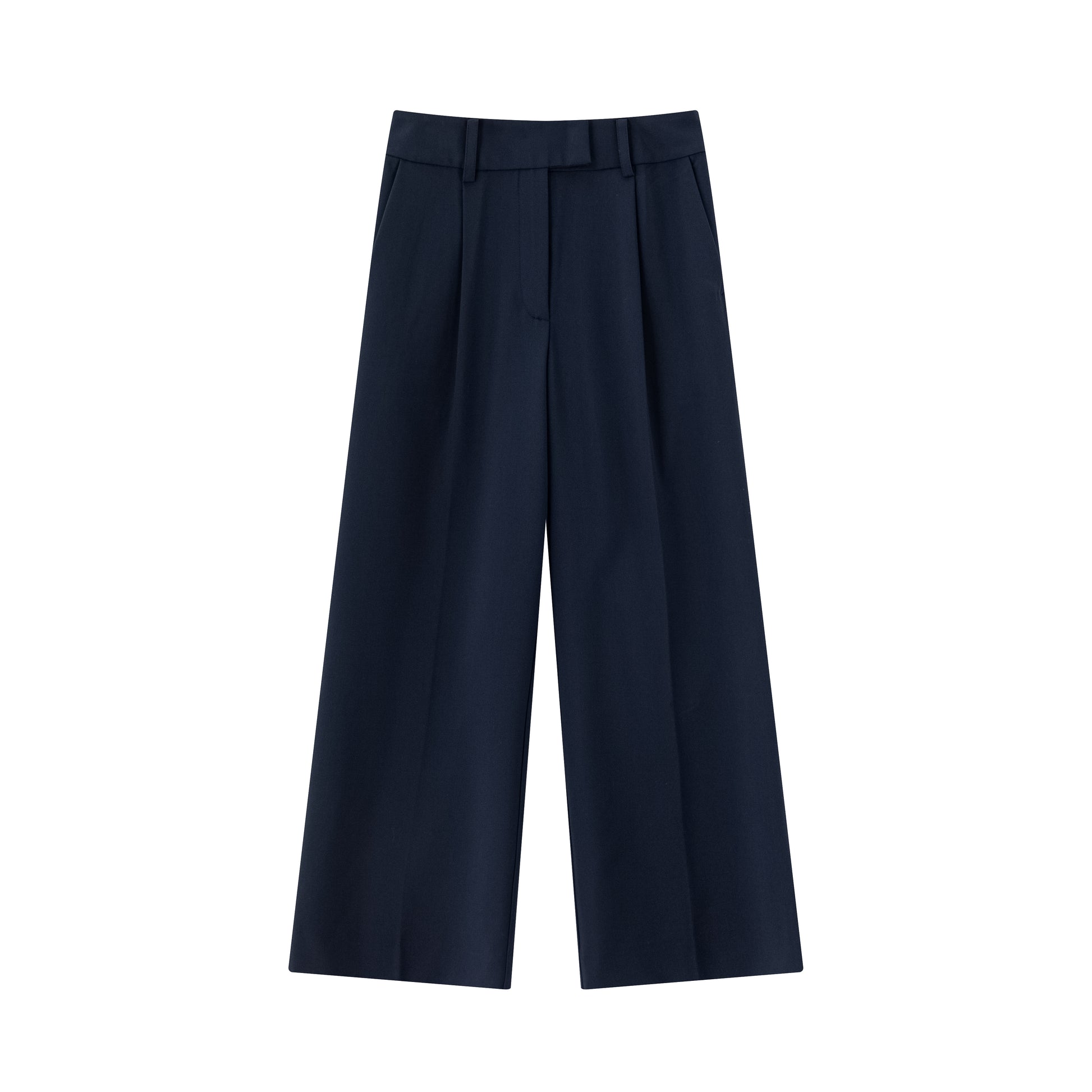 High-waisted, loose-fit design with gentle pleats for fluid motion.