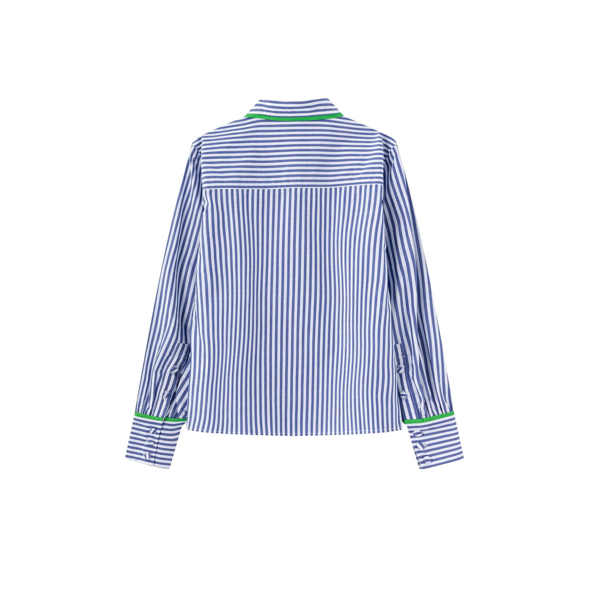 Make a statement in this crisp blue striped shirt, highlighted by bold green trim along the collar, placket, and cuffs. Crafted from breathable cotton, it offers the perfect blend of sharp style and everyday comfort. Effortlessly versatile, this shirt pairs seamlessly with tailored trousers, denim, or layered outfits—ideal for both workdays and weekend adventures.
