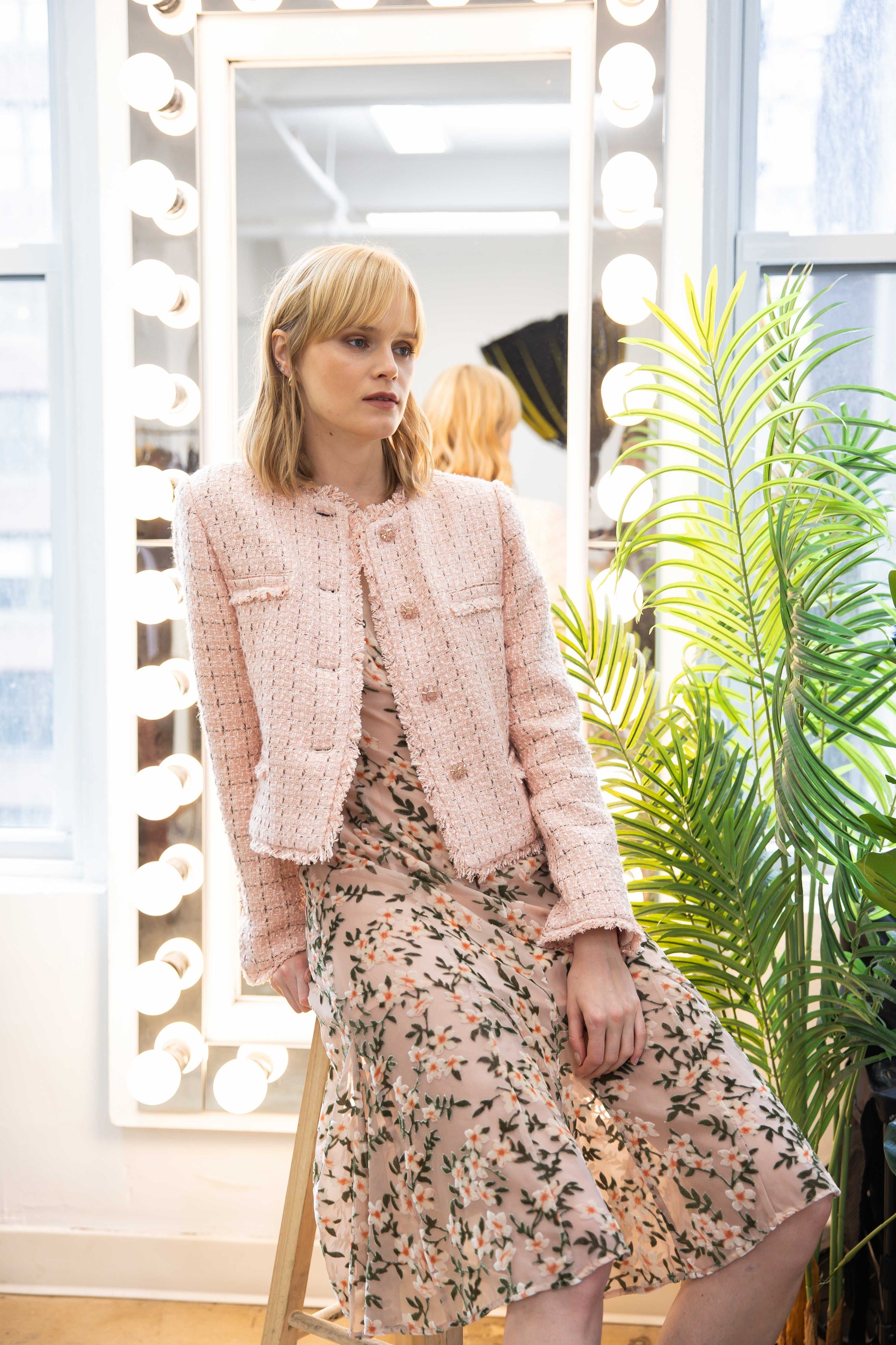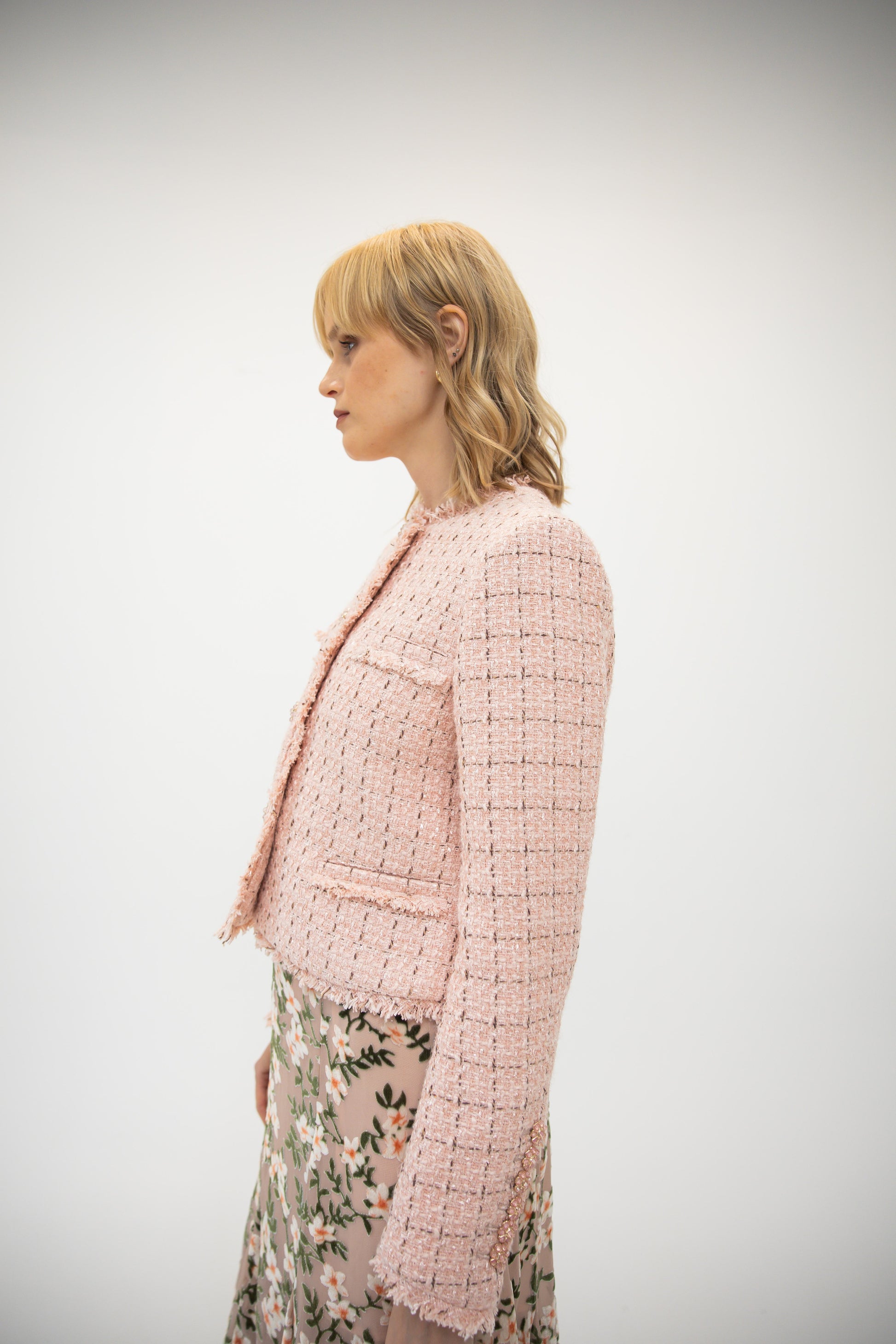 Raw Edge Collarless Jacket Tweed - Tea Rose