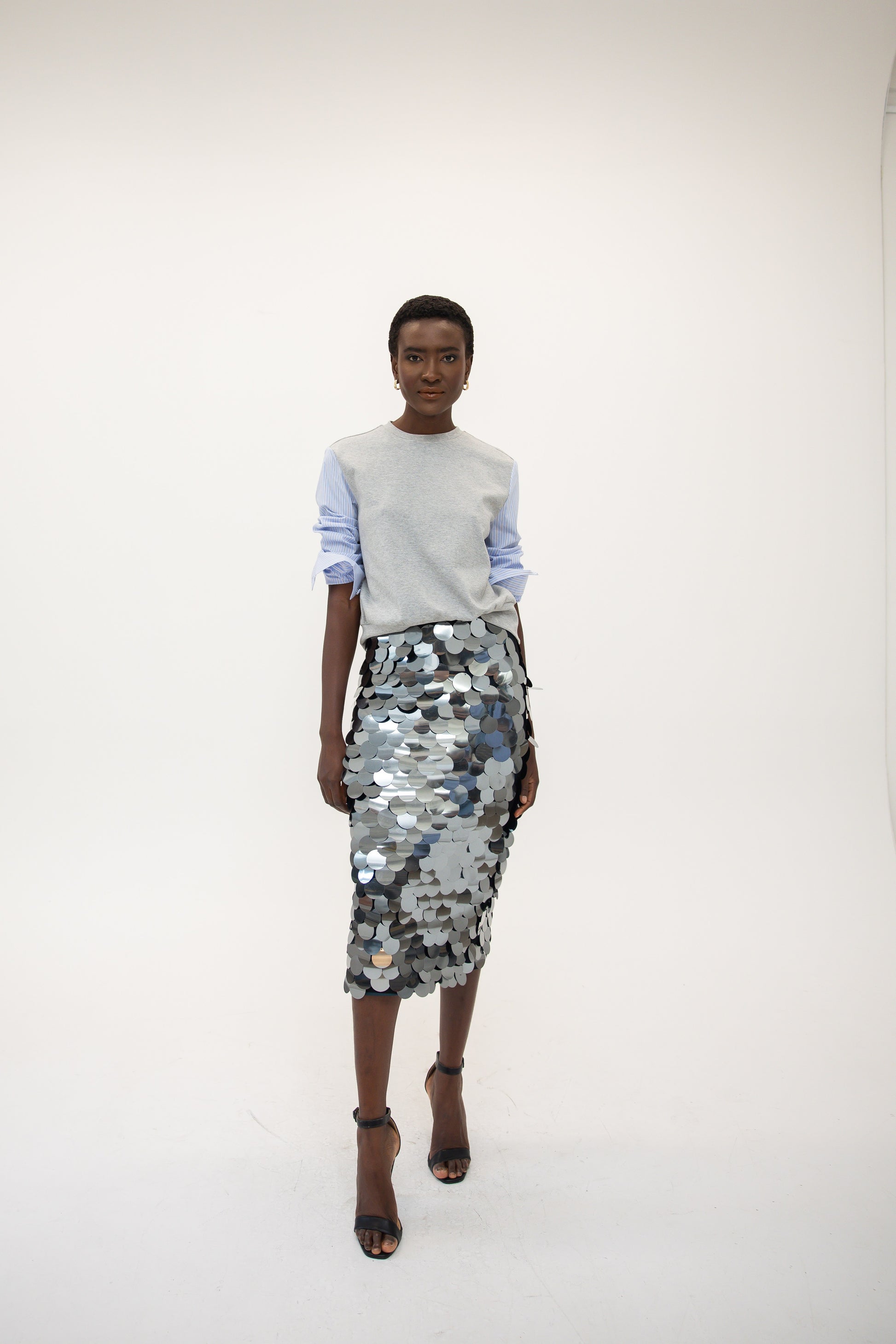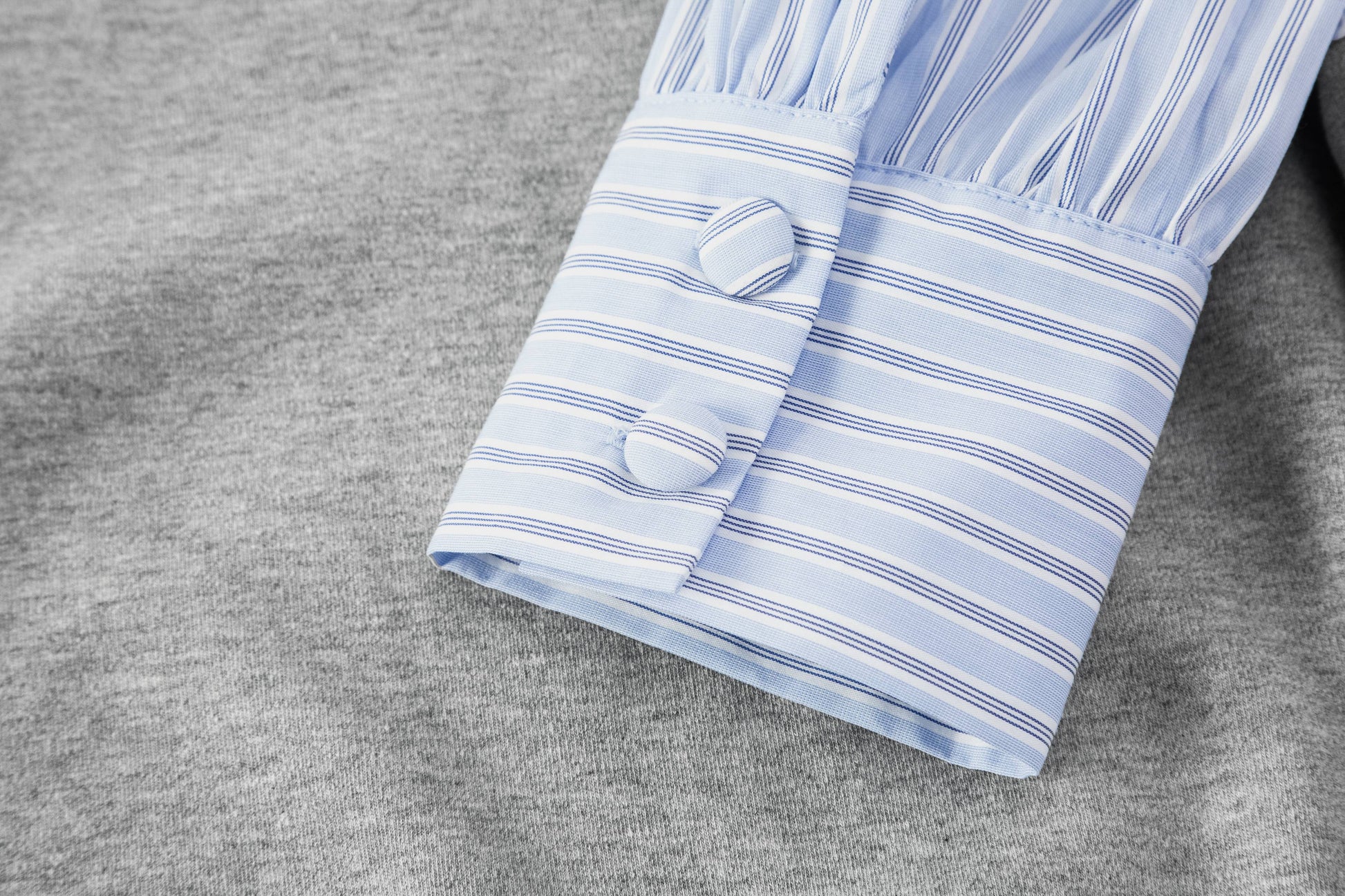 - Cotton banker stripe sleeves for subtle pattern contrast