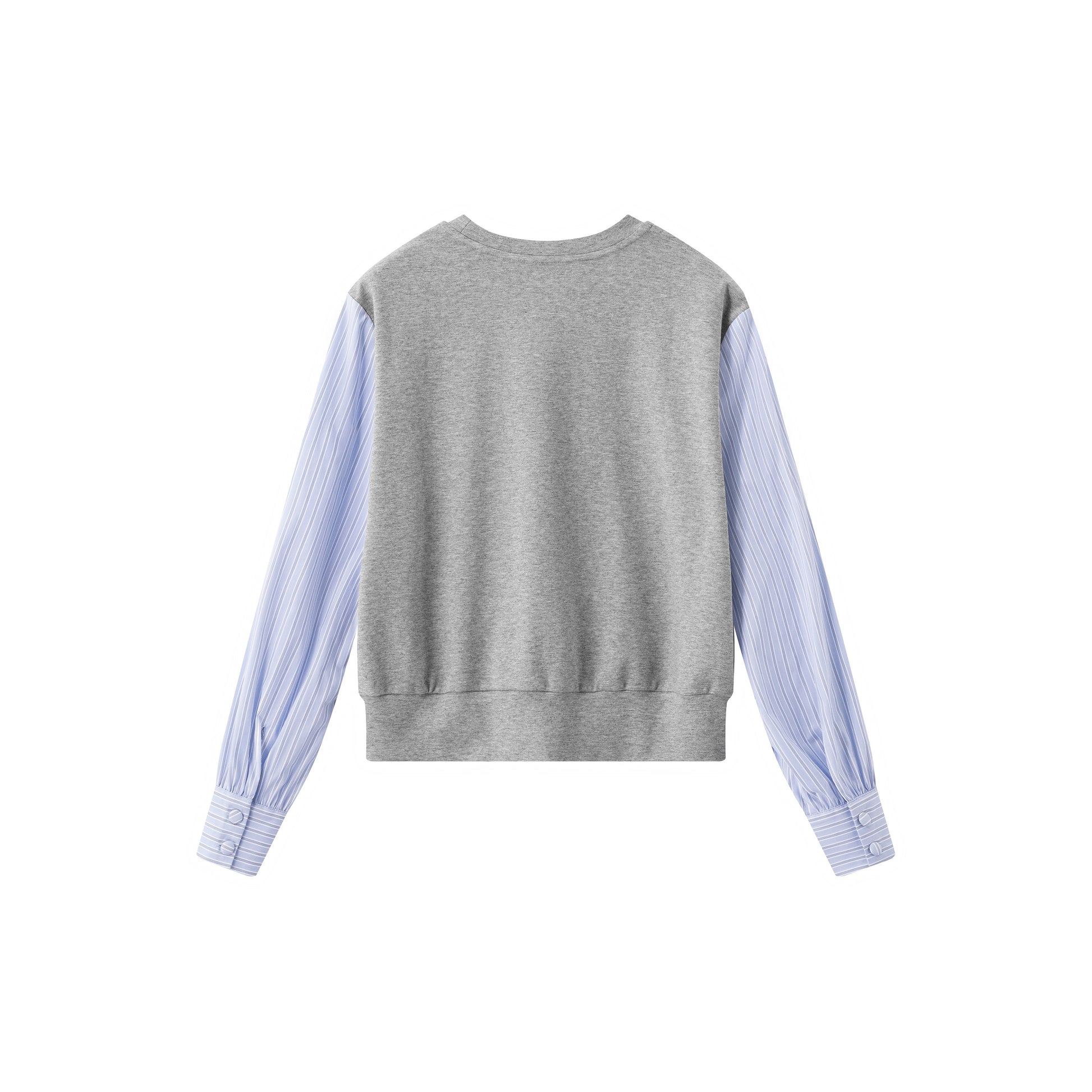 Heather GreySweatshirt w/ Banker Stripe SleevesIntroducing the Classic Heather Grey Sweatshirt—a versatile casual staple featuring cotton banker stripe sleeves in soothing blues and grey. Soft, stretchable fabrics provide comfort while maintaining a polished appearance. Ideal for relaxed weekends or casual office settings.